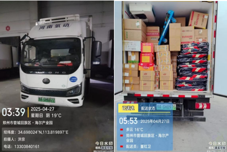 场景描述:本场景下聚焦于完成货物在国际、省际干线冷链物流之后,河南省内郑州-安阳林州支线运输。项目依托搭载国氢科技燃料电池系统的4.5吨氢燃料冷藏物流车开展,车辆综合续航里程长、加注氢气时间短,解决直线冷链物流运输对时效要求高、过程管控高效等问题,完成干线到仓之后冷链不断链、当日达等时效要求。物流运输距离300公里左右,日均行驶500公里左右。