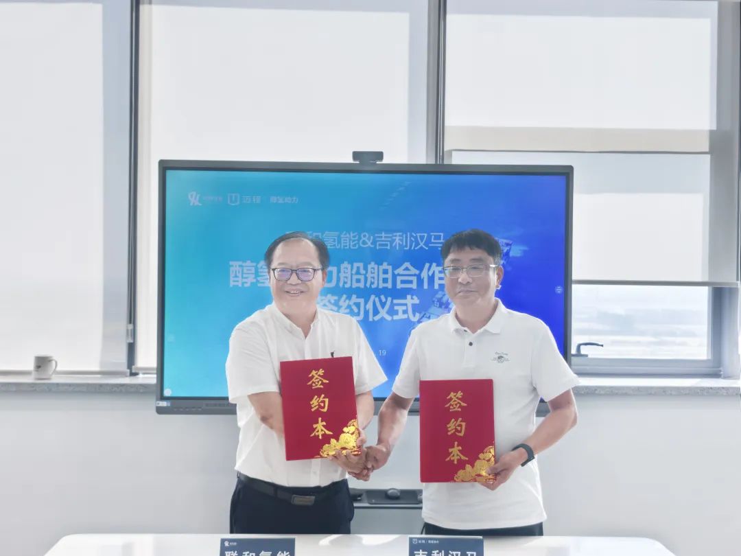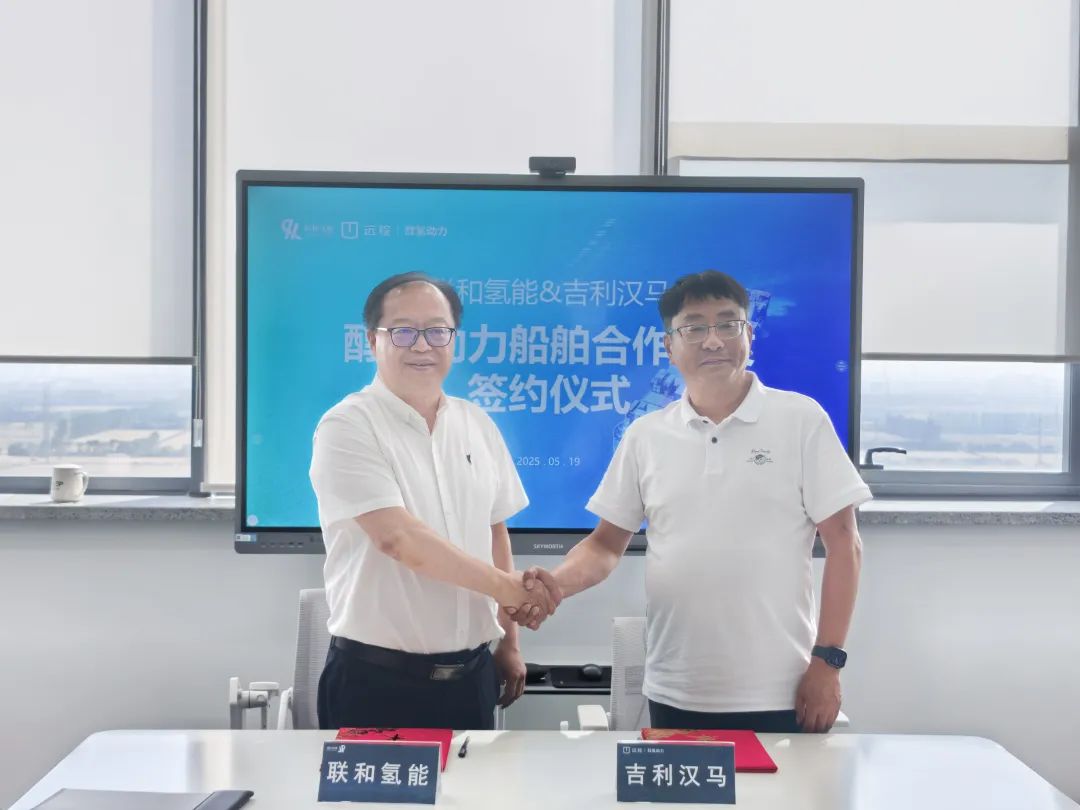 2025 年 5 月 19 日,联和氢能与吉利汉马醇氢动力船舶合作开发签约仪式在联和氢能嘉兴全球总部隆重举行,这一里程碑事件标志着两家行业领军企业正式携手,将为全球绿色航运提供 “中国方案”。