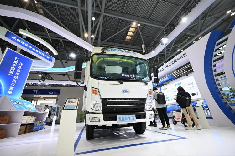 工业板块则以智能装备制造和打造中国第一汽车后市场为主,其中氢能物流车、氢能助力车首次亮相。其中,氢能助力车主要用于共享助力车领域,通过更换固态储氢系统,实现快速补能。该氢能助力车目前已在川渝等地投用,一次加满100克氢气,就能续航100余公里。