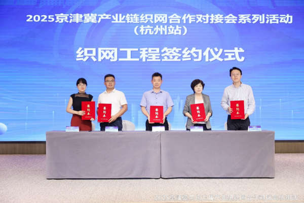 2025京津冀与长三角产业链织网合作对接会主题为“迈向高质量,共筑动力源”,由京津冀协同发展联合工作办公室指导,北京市经济和信息化局、天津市工业和信息化局、河北省工业和信息化厅主办,中国通信企业协会、北京市协同发展服务促进会承办,数十家单位及企业代表共同参会。
