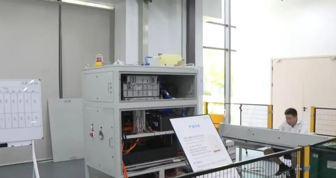 AGV小车灵活运送部件,机械臂精准抓取模组,工作人员对即将交付的制氢电源产品进行调试……重塑制氢装备研发智造总部项目现场,自动化产线高效运转,创新热潮在5300平方米的智能制造空间里涌动。