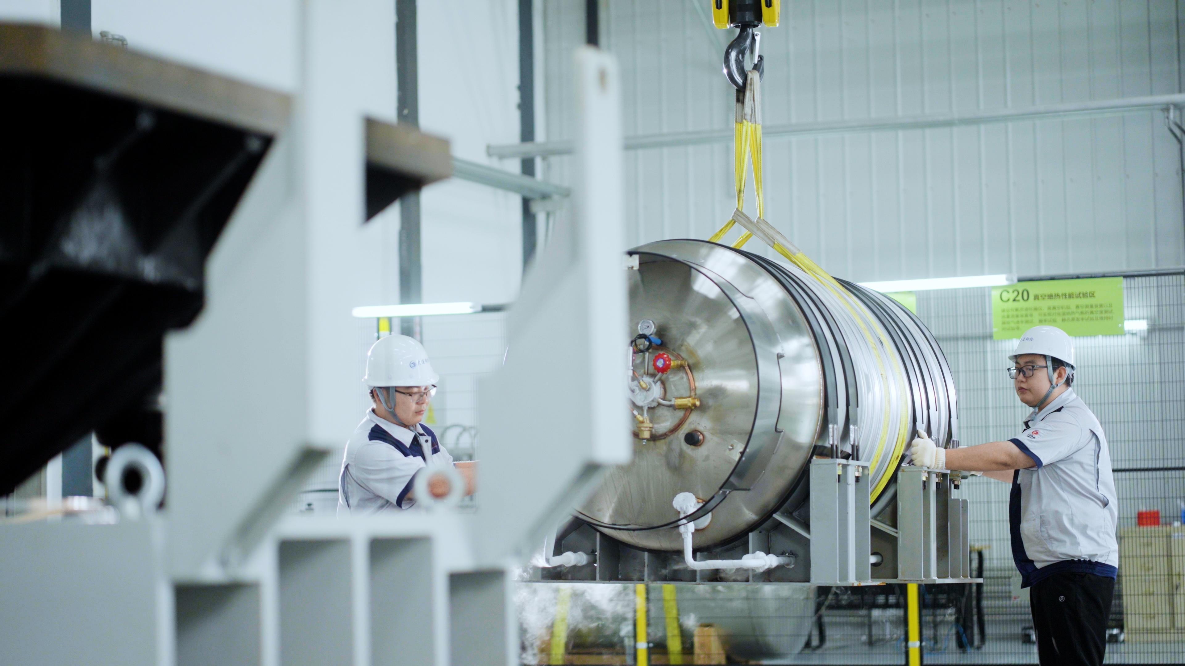 大检集团实验人员在进行LNG低温瓶震动实验。大检集团供图