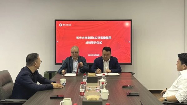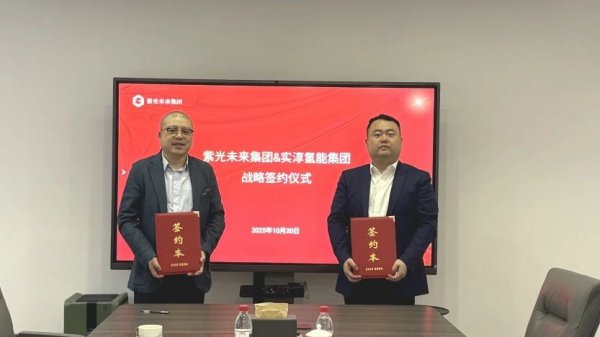 2025年10月20日,紫光未来集团董事长黄勇与实淳氢能董事长刘磊在杭州进行了战略签约。黄俊、范佳豪等一同见证签约。