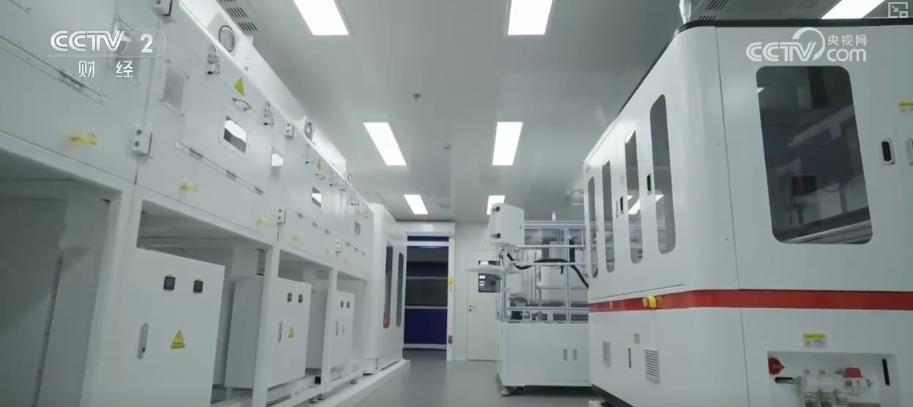 厂房屋顶光伏板吸收着阳光,将它们转化为电能。但由于光伏电池的不稳定性,并不会直接使用,而是要经过一系列转换。这些设备就是整个系统的核心——电解槽,它就像超级版的电解水实验装置,通过电力将水分解成氢气和氧气。