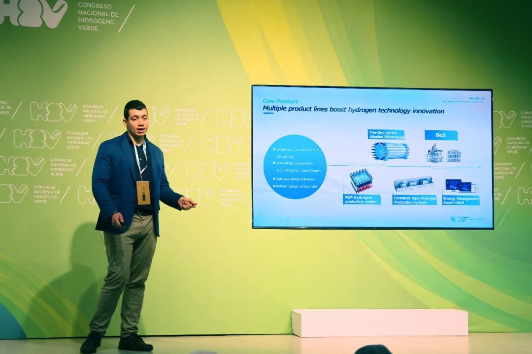 2月4-6日,第三届西班牙全国绿氢峰会在韦尔瓦隆重举行,本次峰会由韦尔瓦企业家联合会(FOE)主办、西班牙氢谷联盟协办,汇聚了来自欧洲、拉美、亚洲的千余名行业专家、企业高管及政府代表,聚焦绿氢产业政策、技术创新、项目落地及国际合作等核心议题。天合元氢受邀参会,欧洲区业务总监费南多发表主题演讲,全方位分享天合元氢在绿氢技术研发、欧洲市场布局的丰硕成果,引发与会嘉宾广泛关注。