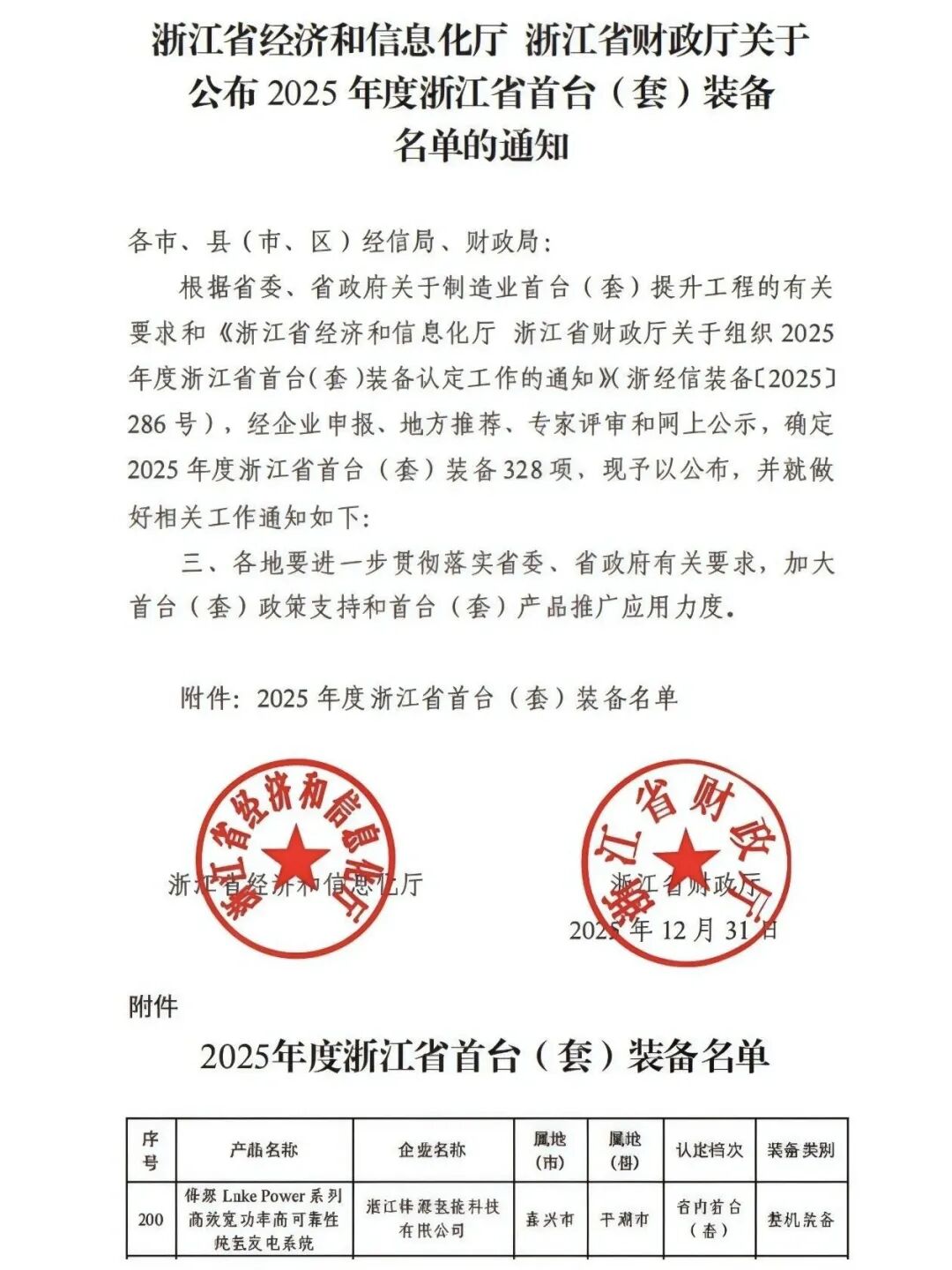 荣获浙江省首台(套)装备认定(浙江省经济和信息化厅)