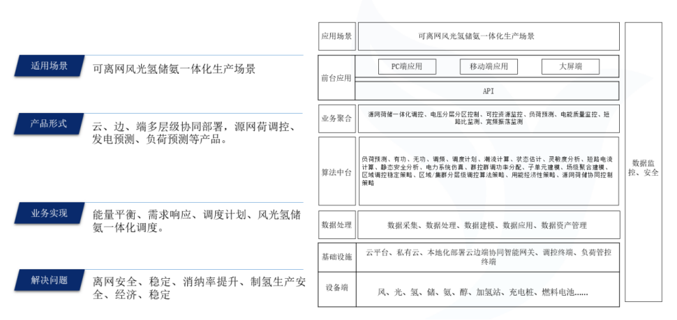 系统通过三大核心功能——离网稳定、集群管控、能量平衡等多维策略的执行,实现离网稳定性、就地消纳率、电能质量、系统安全、设备健康、排产优化的综合最优解,优化解决了大规模集群动态制氢场景下,供给侧和消纳侧的多元能量耦合、设备健康安全稳定运行等关键问题。