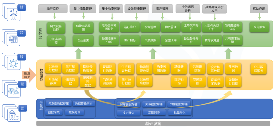 系统以风光氢储的设备特性、能源特性及系统特性为边界,在能源IoT和能源数据平台基础上,通过数据模型、AI算法、数字孪生等数智应用,综合协调风、光、氢、储、网的运行状态,实现对大规模制氢系统全时空过程的精准监测,以及全过程多时态耦合的智能调度。