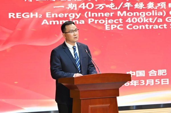 3月5日,中国化学工程东华公司牵手欧孚绿氢集团(葡萄牙),与旗下再生绿氢能源(内蒙古)有限公司共同签署年产80万吨风光氢氨一体化项目一期一阶段工程绿氨工程EPC总承包合同。东华公司党委副书记、总经理孟陈周,欧孚绿氢首席技术顾问丁辉、副董事长刘我翔出席仪式并见证签约,双方就深化绿色能源领域合作进行深入交流。