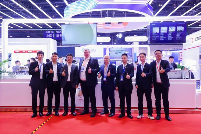 展会上,中车株洲所邀请了国华、中煤、中石油、国家管网、中核汇能等多家国内能源化工企业相聚展台参观并洽谈未来氢能合作发展事宜,此外还与阿布扎比未来能源(MASDAR)、澳洲Fortescue、印度ACME等海外能源企业就绿氢需求开展了深入交流。同日下午中车株洲所受邀参加了氢能联盟“氢能领跑者”行动授证仪式,获得联盟最新氢能领跑者证书。