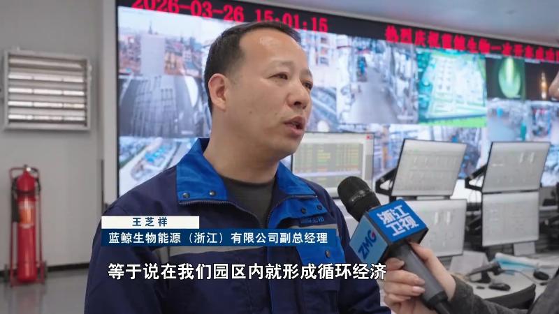 蓝鲸生物能源(浙江)有限公司副总经理 王芝祥:运费节省,没有产生碳排放。等于说在我们园区内就形成循环经济。