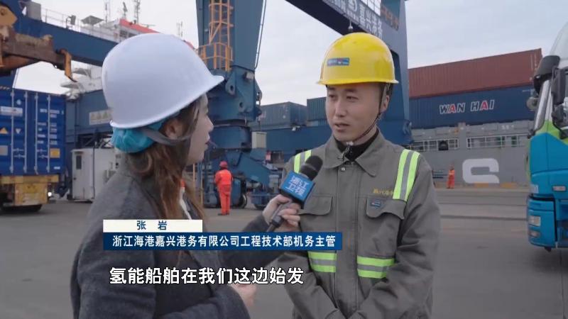 浙江海港嘉兴港务有限公司工程技术部机务主管 张 岩:氢能船舶在我们这边始发,到杭州那边的下沙港,氢能应用在逐渐扩大应用场景。