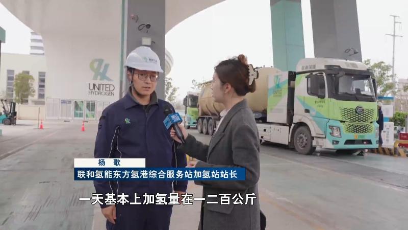 联和氢能东方氢港综合服务站加氢站站长 杨 歌:一天只有五六辆车,一天基本上加氢量一二百公斤。外部供氢、拉运成本,价钱可能降不下来。我们这边也是属于也是有心无力,可以说卖得越多可能亏得越多。