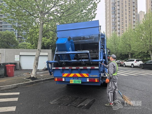 4月20日上午10点,一辆挂着绿色新能源牌照的5吨清运车缓缓驶入上城区富春路,驾驶员马忠元和搭档张洪亮刚刚完成钱塘印象小区的清运工作,正驶往春江花月小区。他们驾驶的是杭州首批醇氢新能源生活垃圾清运车,相比传统车辆,它的运行更安静,尾气排放也更清洁。