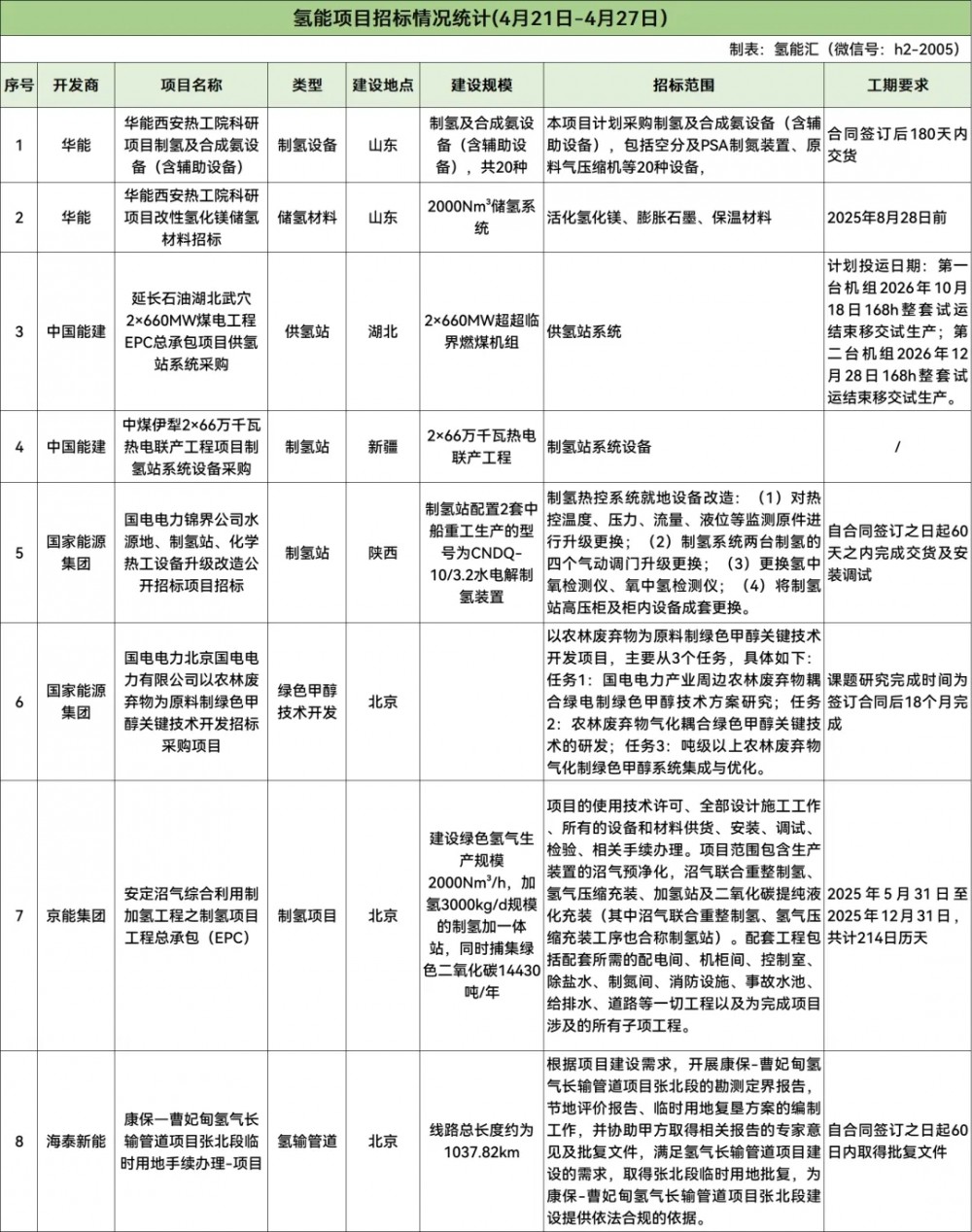 8个氢能项目招标