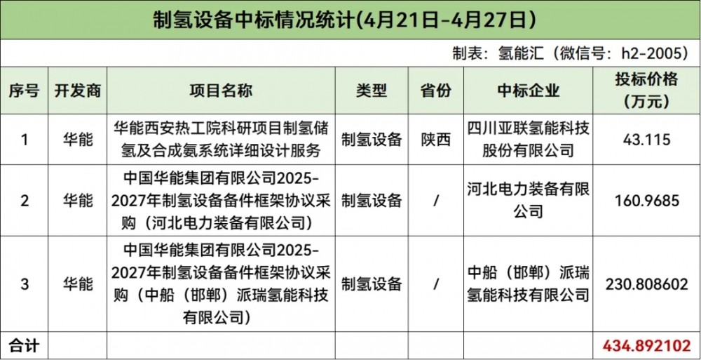 3家企业中标制氢设备采购