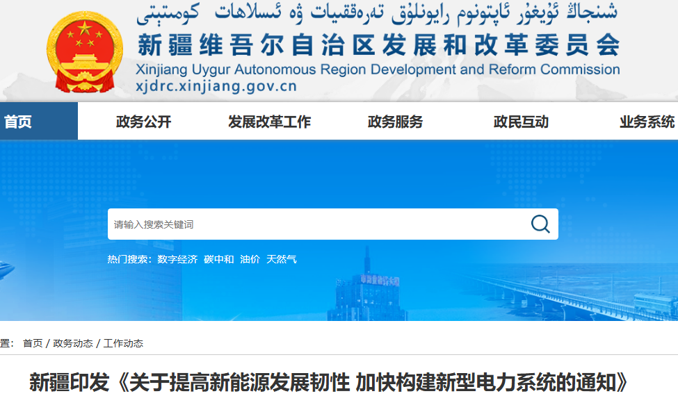 近日,新疆印发《关于提高新能源发展韧性 加快构建新型电力系统的通知》。