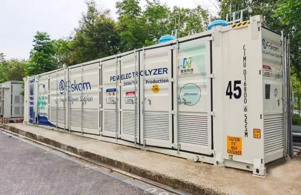 2025年10月8日“国际氢能日”,上海氢锐科技有限公司(以下简称“上海氢锐”)宣布,其欧盟CE认证的MW级PEM制氢设备出海发往南非国家电力公司ESKOM旗下某项目地,系中国制造MW级PEM制氢装备首次出海。该产品满足光伏制氢波动性运行场景的需求,具有高度集成、自动化以及低能耗等特点。高纯氢气(Purity:99.999%,Dew point:-75 °C)主要用于火力发电厂的氢冷发电机系统,其余通过园区管道提供给附近的化工企业,标志着国产MW级PEM制氢设备在工业应用领域的一次重要进展。