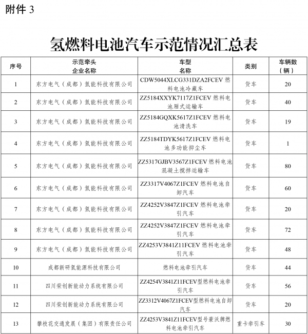 申报方向和有关要求的项目,包括1项加氢基础设施项目,3项氢能应用场景项目,以及13个氢燃料电池汽车示范车型,共510辆氢燃料电池汽车。公示期为2025年10月17日—2025年10月24日。