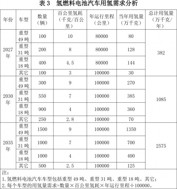根据我市氢能应用场景分析及氢燃料电池车辆历年发展趋势,结合行业发展形势评估和分析,预测全市氢燃料电池汽车2027年有望达到800辆,2030年有望达到2000辆,2035年有望达到4000辆(具体情况见表2)。