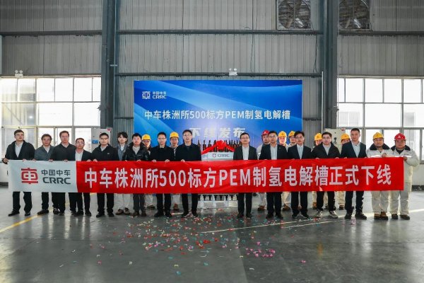 12日14日,中国中车旗下中车株洲电力机车研究所500Nm³/h PEM电解槽在湖南株洲成功下线。