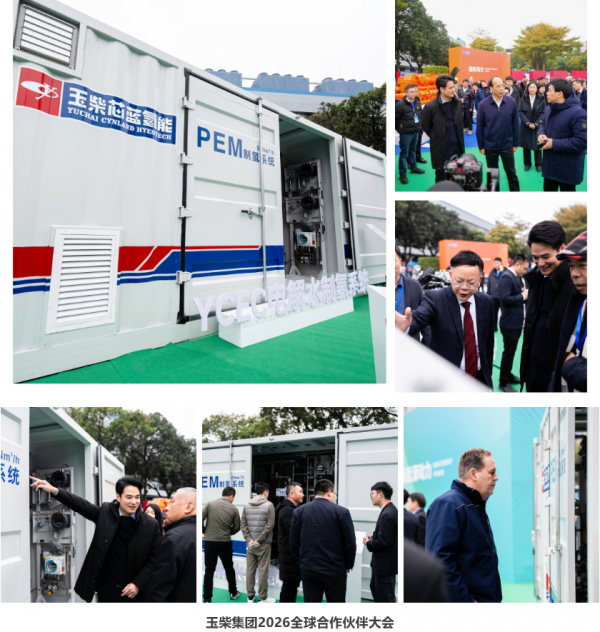 2026年1月24日,玉柴集团2026全球合作伙伴大会在广西玉林隆重召开。期间,玉柴制氢装备新品250kW PEM电解槽制氢系统重磅首发,以硬核科技内涵诠释玉柴对人类环境低碳与零碳的担当,成为全场焦点之一。